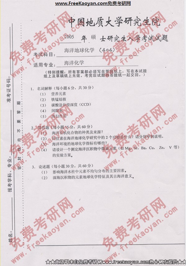 相关话题/半岛在线注册真题 中国地质大学 地球化学 海洋