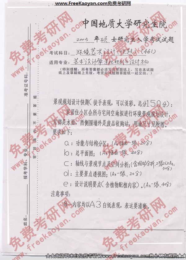 专业课半岛在线注册经验 本站小编 FreeKaoyan 2018-01-23中国地质大学(武汉)2005年半岛在线注册真题-环境艺术