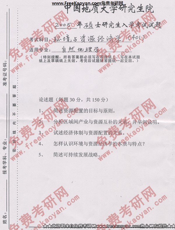 相关话题/半岛在线注册真题 中国地质大学 环境 经济学 资源