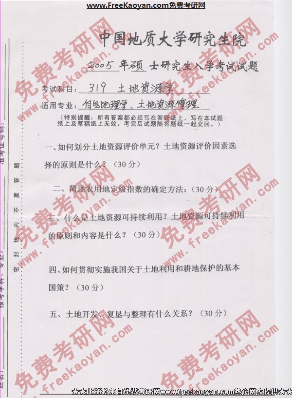 相关话题/半岛在线注册真题 中国地质大学 土地资源