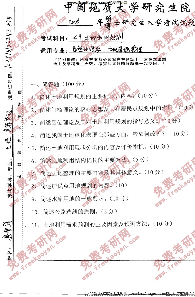 相关话题/半岛在线注册真题 中国地质大学 规划 土地利用