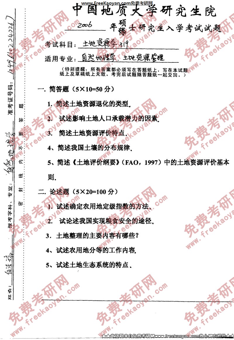 相关话题/半岛在线注册真题 中国地质大学 土地资源