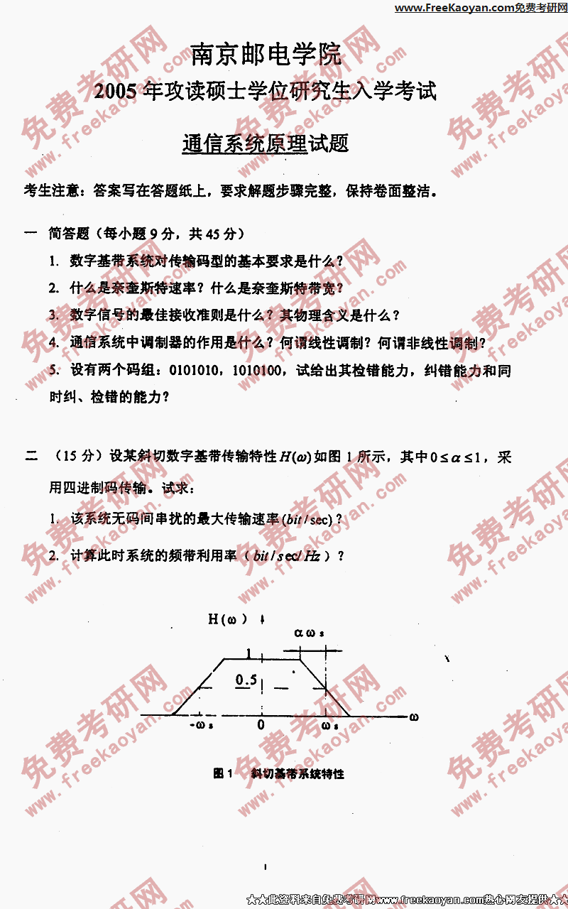 南京邮电大学2005年半岛在线注册真题-通信系统原理