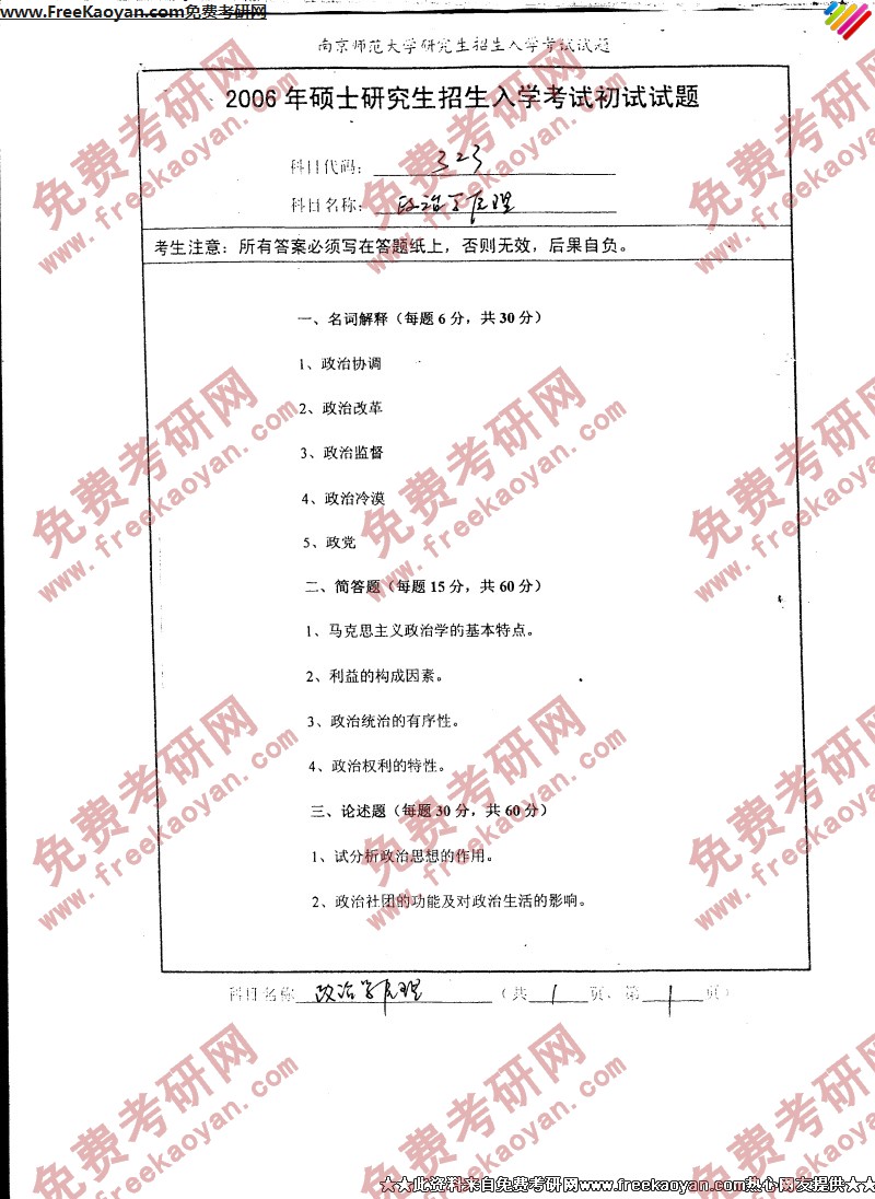 南京师范大学2006年半岛在线注册真题-政治学原理