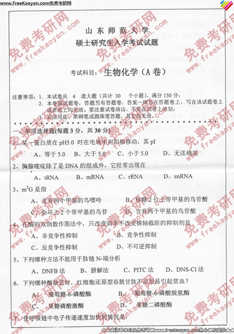 相关话题/山东师范大学 半岛在线注册真题 生物化学