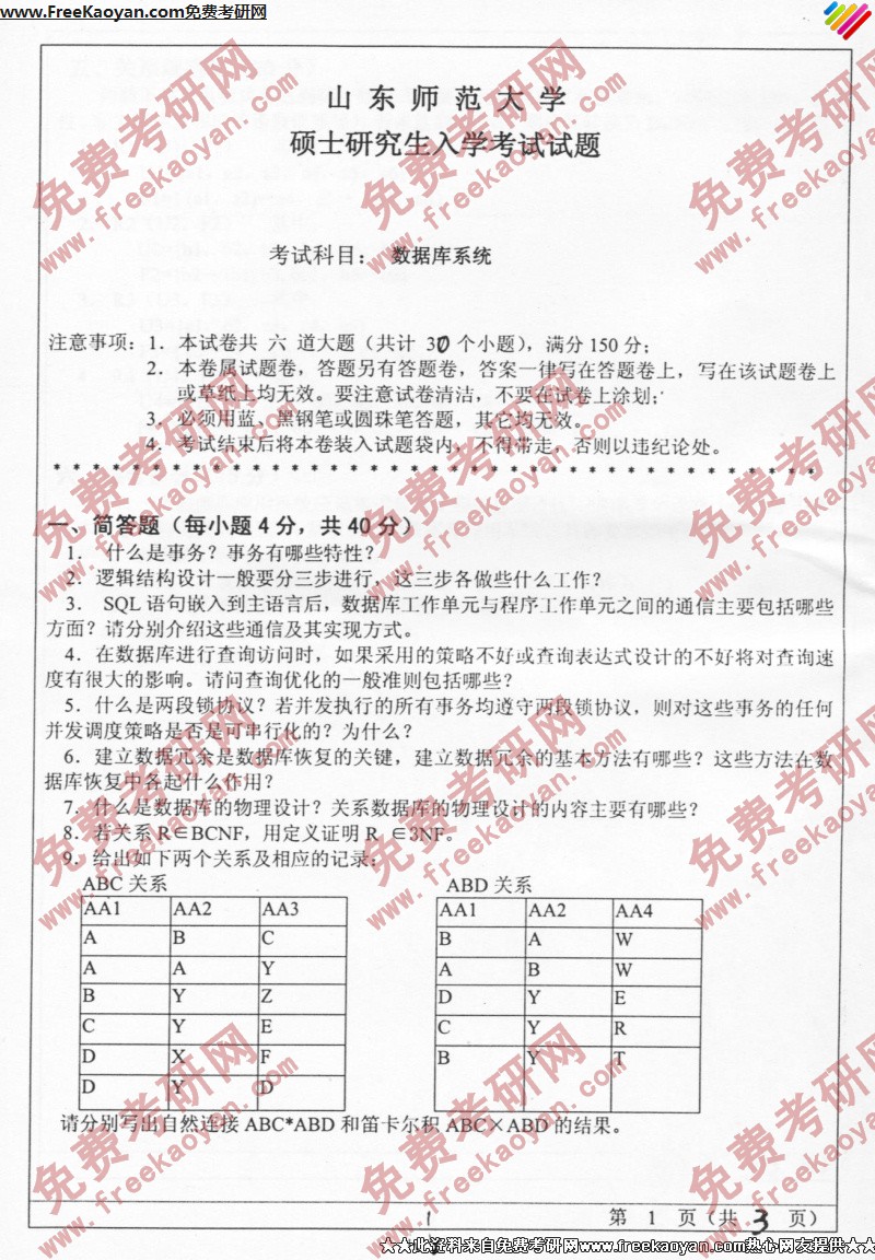 山东师范大学2005年半岛在线注册真题-数据库系统