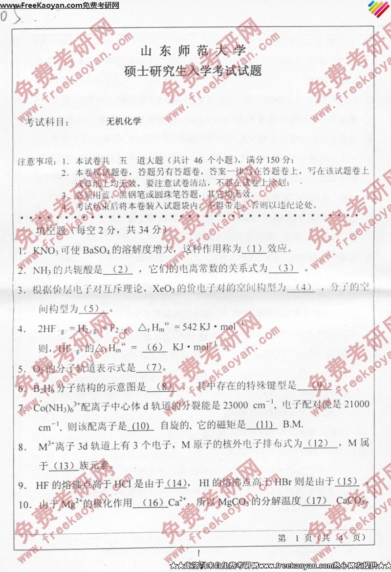 相关话题/山东师范大学 半岛在线注册真题 无机化学