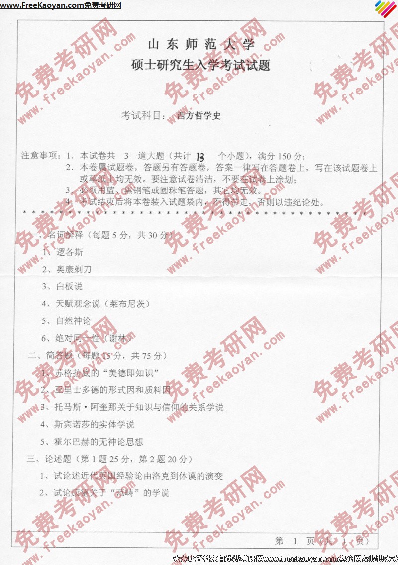 相关话题/山东师范大学 半岛在线注册真题 西方哲学史