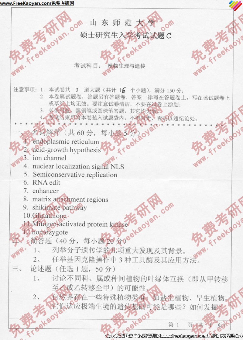 相关话题/半岛在线注册真题 山东师范大学 植物 遗传 生理