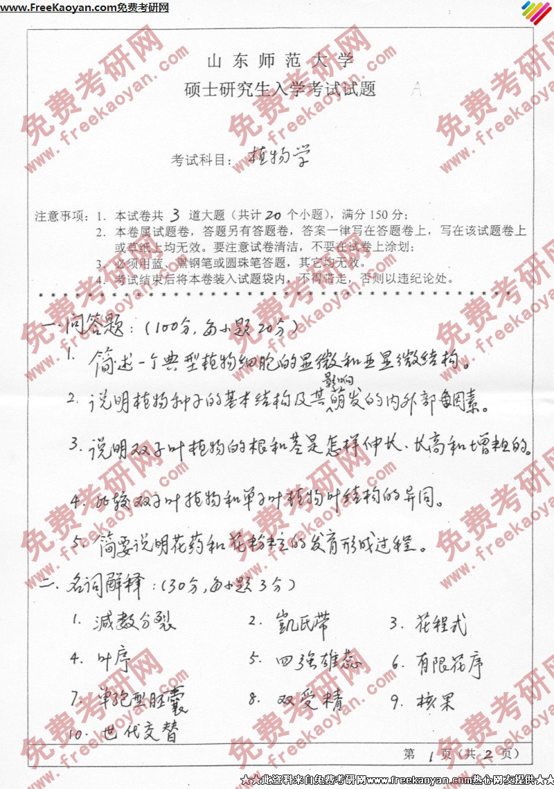 相关话题/山东师范大学 半岛在线注册真题 植物学