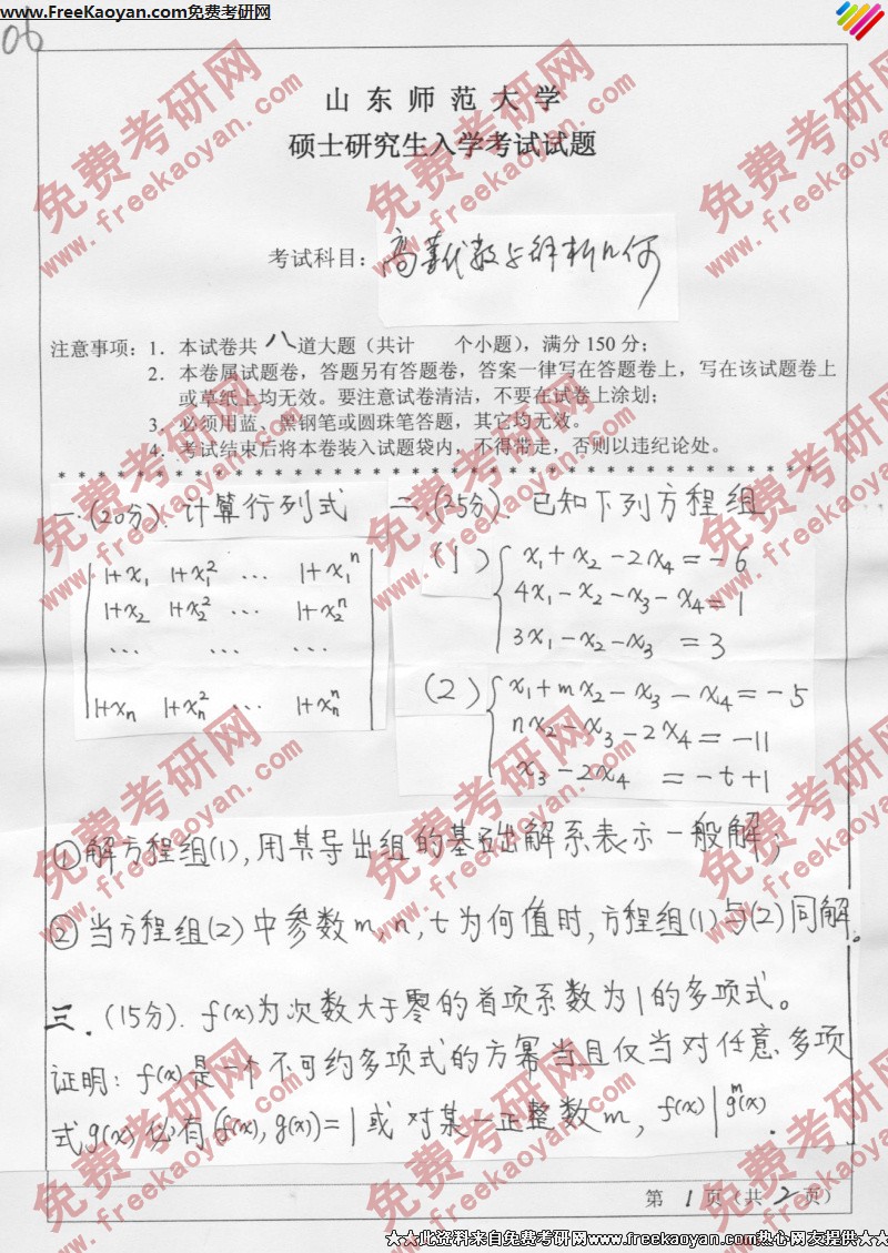 相关话题/半岛在线注册真题 高等代数 山东师范大学 解析几何