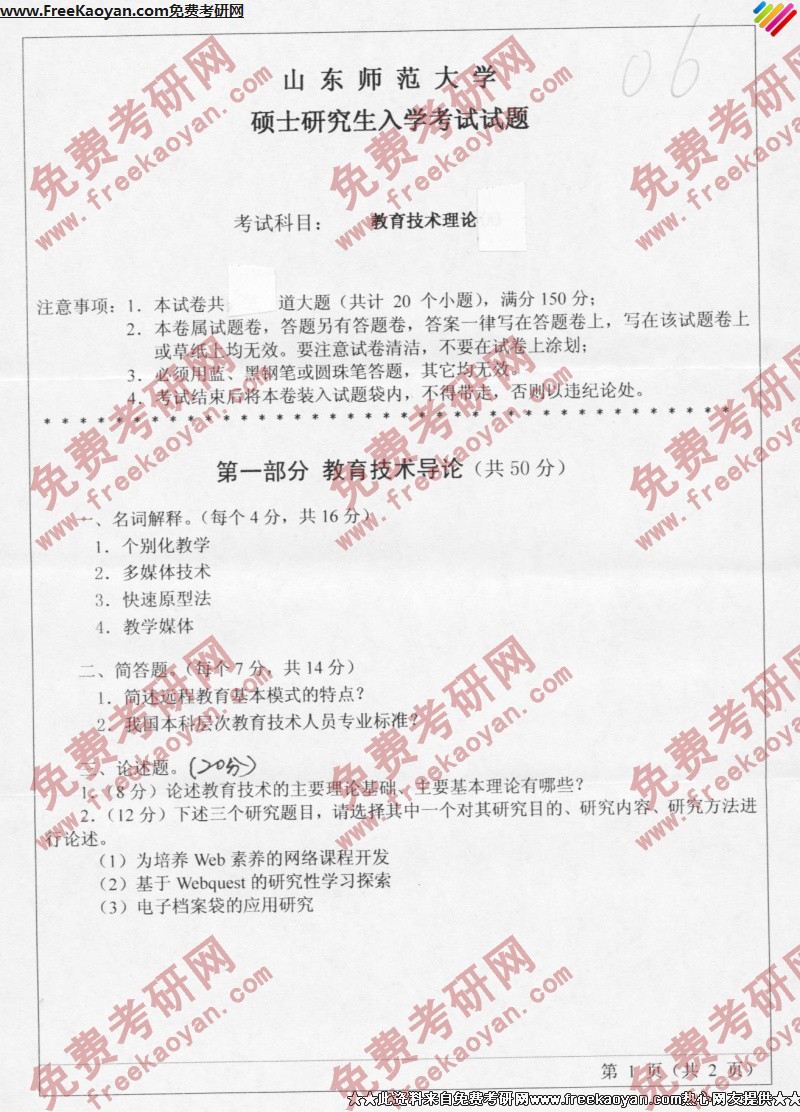 山东师范大学2006年半岛在线注册真题-教育技术理论