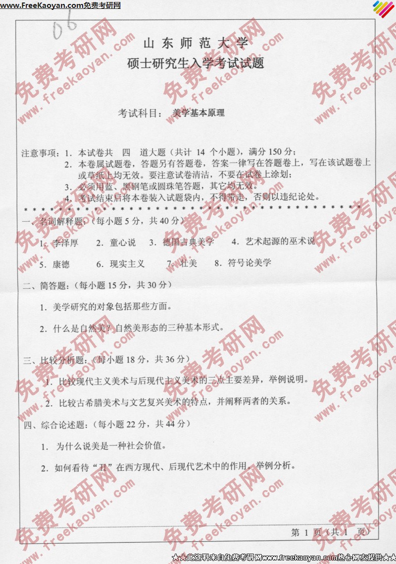 专业课半岛在线注册经验 本站小编 FreeKaoyan 2018-01-23山东师范大学2006年半岛在线注册真题-美学