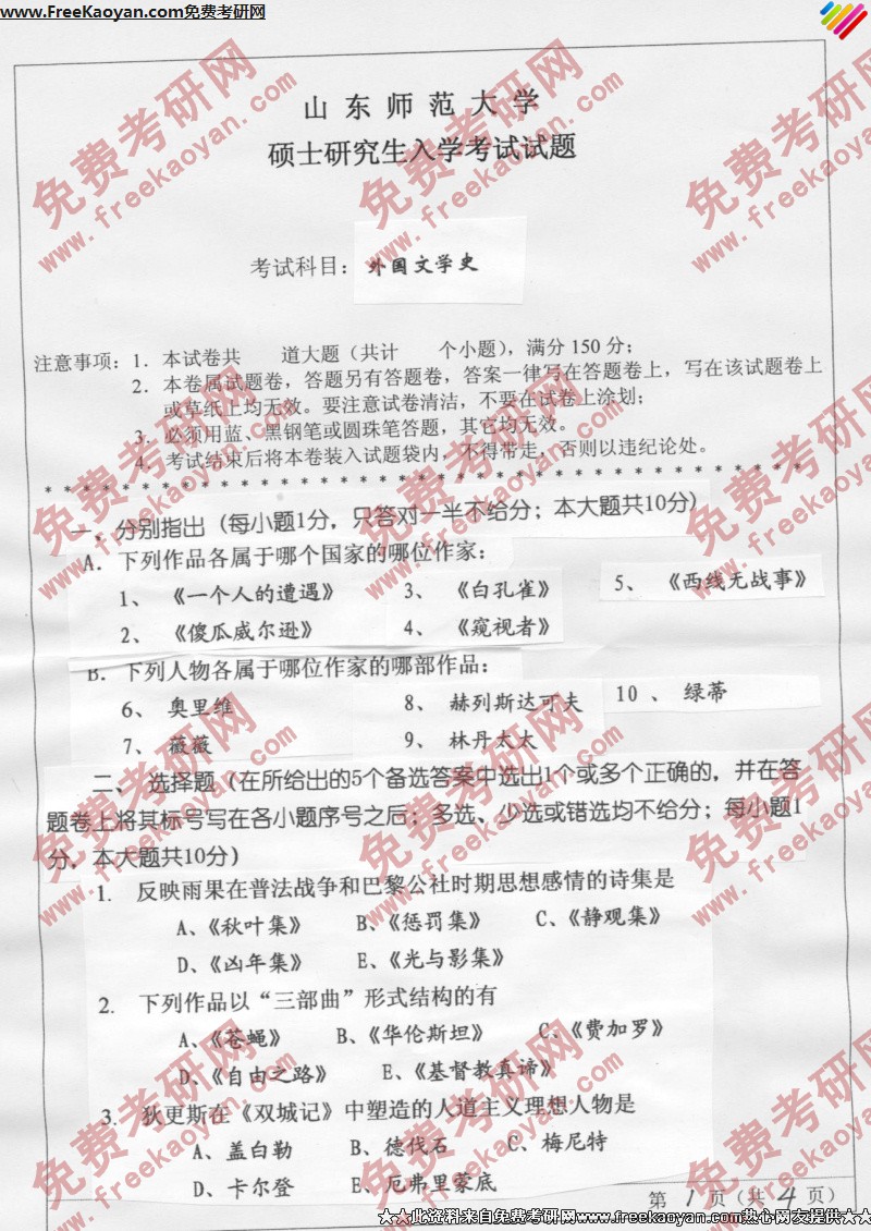 相关话题/山东师范大学 半岛在线注册真题 外国文学史