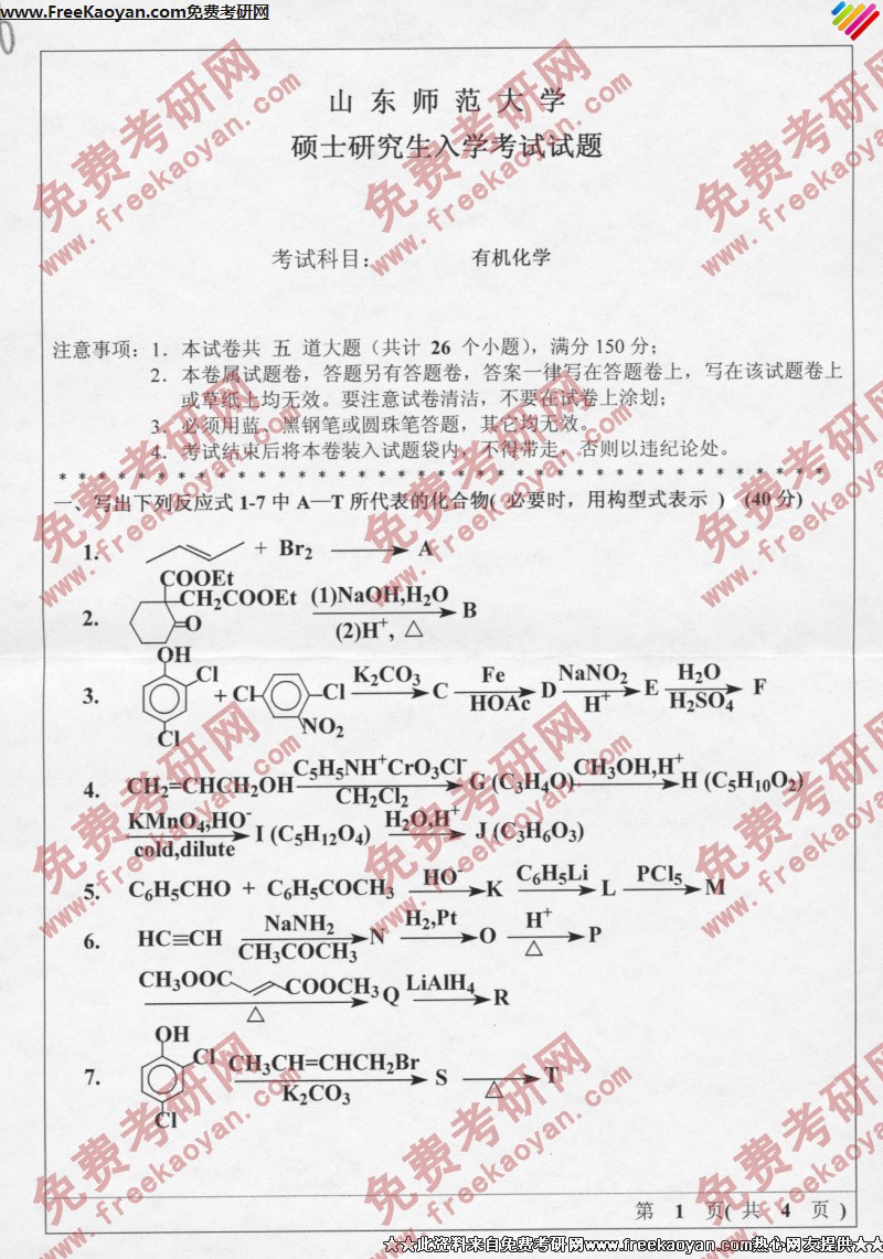 相关话题/山东师范大学 半岛在线注册真题 有机化学