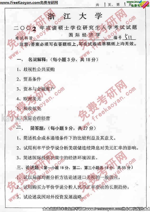 浙江大学2002年半岛在线注册真题-国际经济学