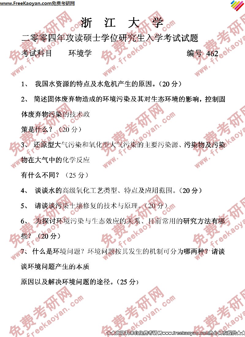 浙江大学2004年半岛在线注册真题-环境学