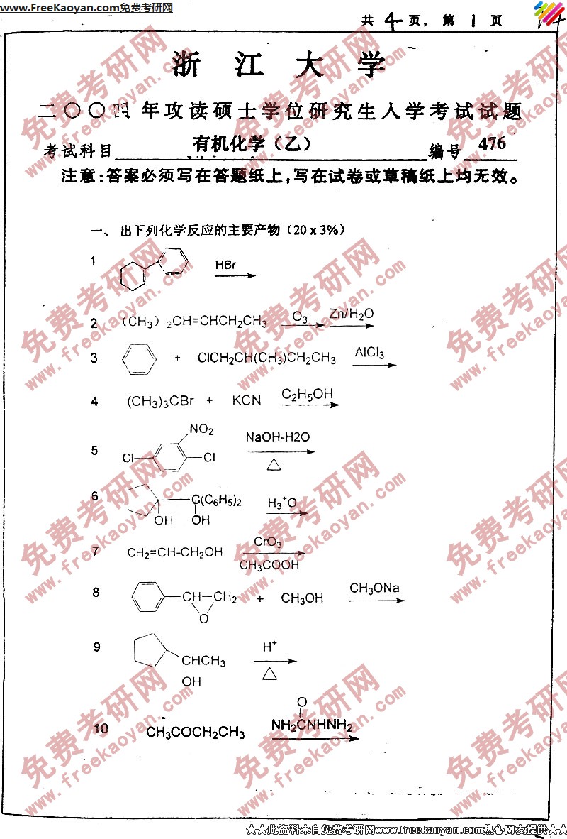 浙江大学2004年半岛在线注册真题-有机化学(乙)