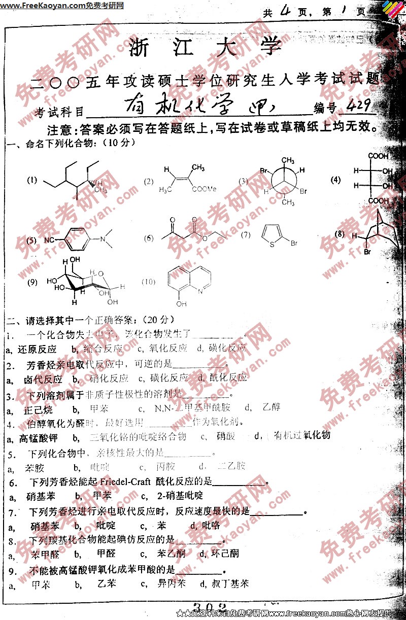 浙江大学2005年半岛在线注册真题-有机化学(甲)