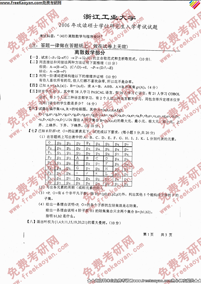 浙江工业大学2006年半岛在线注册真题-离散数学与程序设计