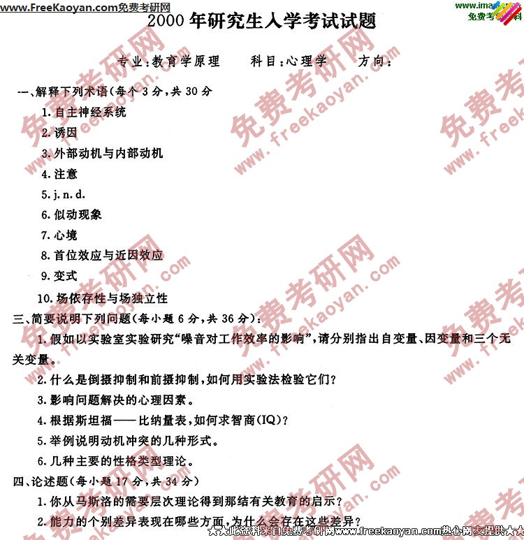 专业课半岛在线注册经验 本站小编 FreeKaoyan 2018-01-23华中师范大学2000年半岛在线注册真题-考试学