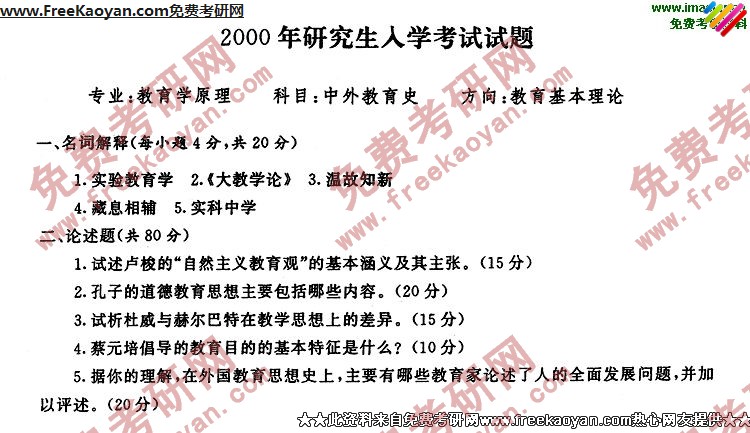 专业课半岛在线注册经验 本站小编 FreeKaoyan 2018-01-23华中师范大学2000年半岛在线注册真题-外国教育史(教育史比较教育专业)