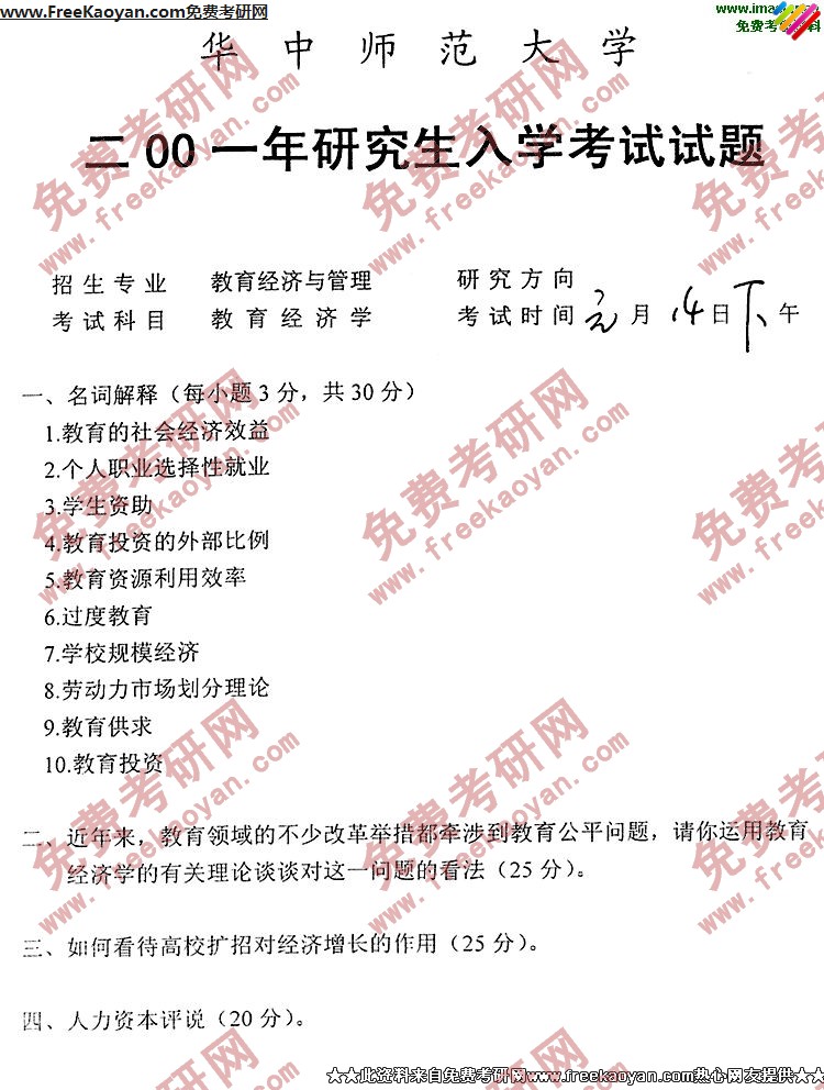 专业课半岛在线注册经验 本站小编 FreeKaoyan 2018-01-23华中师范大学2000年半岛在线注册真题-教育经济学