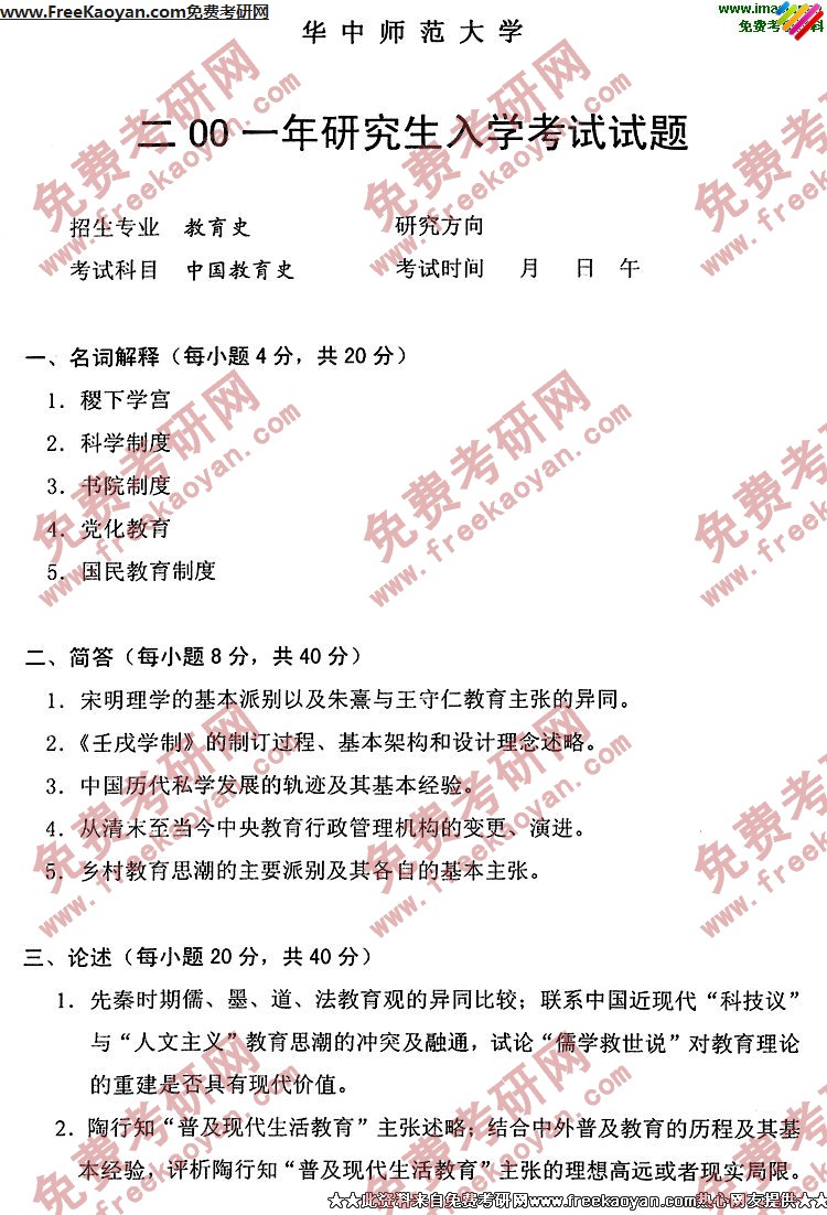 华中师范大学2001年半岛在线注册真题-中国教育史(教育史专业)