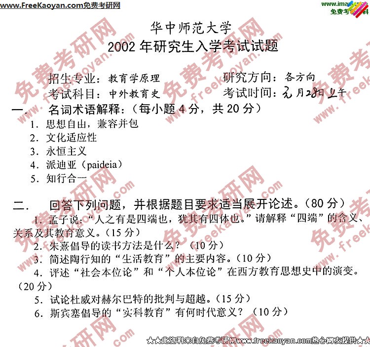 专业课半岛在线注册经验 本站小编 FreeKaoyan 2018-01-23华中师范大学2002年半岛在线注册真题-教育学