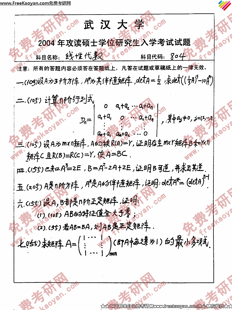 相关话题/武汉大学 半岛在线注册真题 线性代数