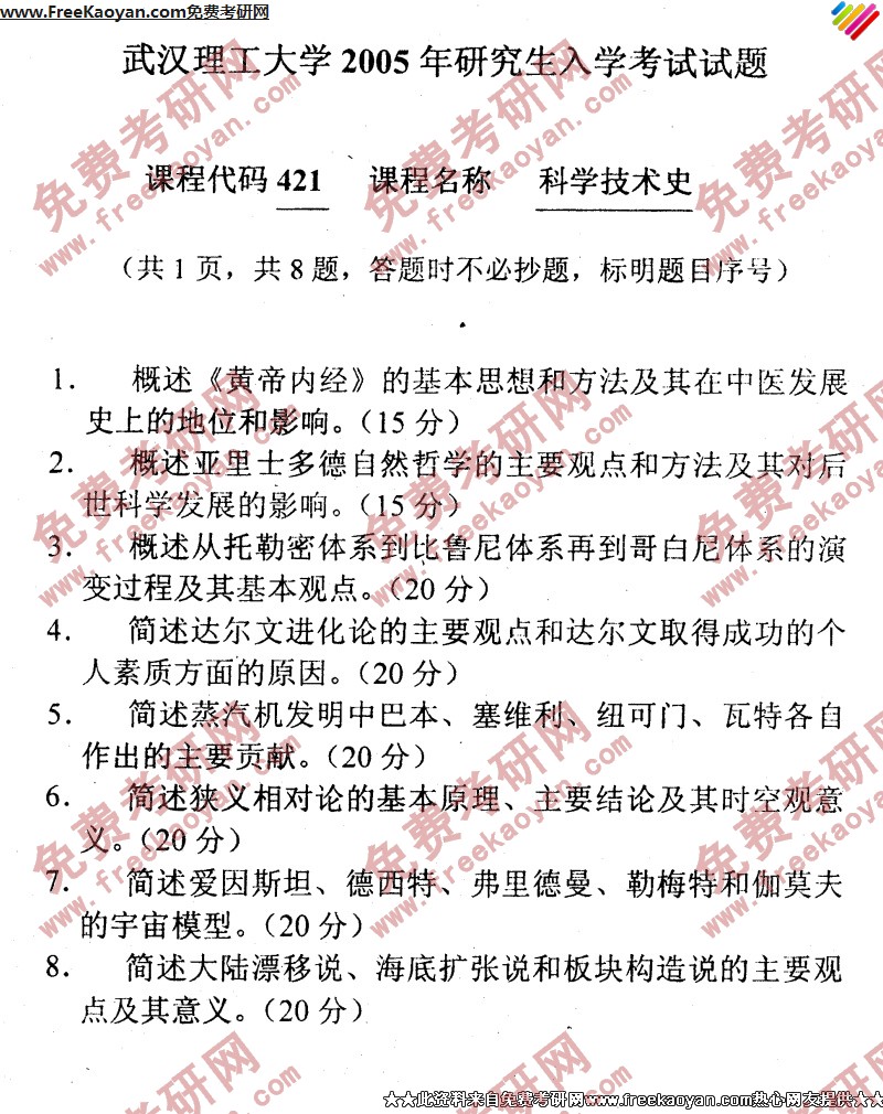 专业课半岛在线注册经验 本站小编 FreeKaoyan 2018-01-23武汉理工大学2003年半岛在线注册真题-科学技术史