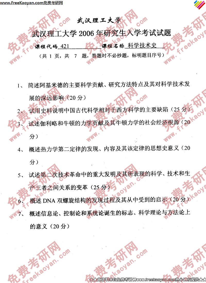 专业课半岛在线注册经验 本站小编 FreeKaoyan 2018-01-23武汉理工大学2005年半岛在线注册真题-科学技术史