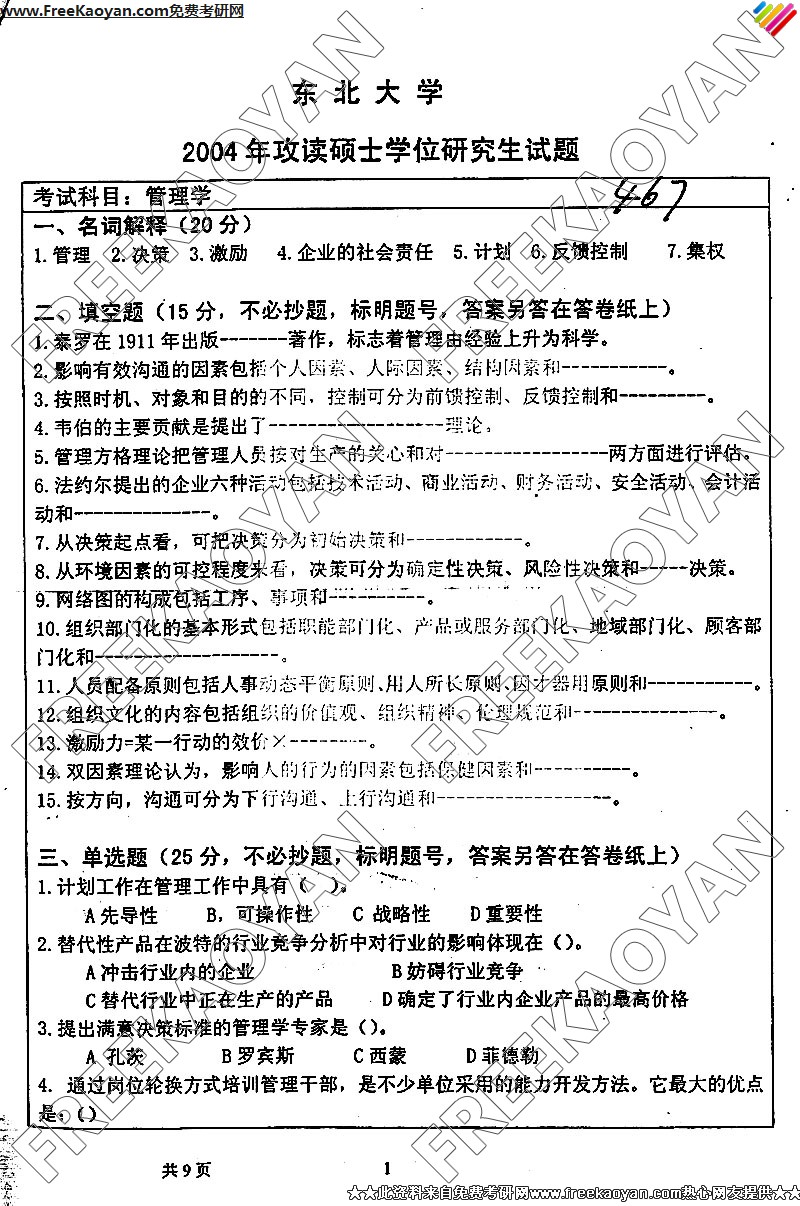 专业课半岛在线注册经验 本站小编 FreeKaoyan 2018-01-23复试同等学力加试试卷加试科目:管理学原理 复试专业:企业管理 考生姓名: 准考证号: 总分:一、简述题(每小题20分,共60分)。1、“在相当程度上管理就是决策”,你对这种提法有何认识?2、双因素理论的基本内容是什么?在现实管理实践中如何运用这种理论?3、企业管理现代化应该包括哪些方面?请谈谈你对推 ...
