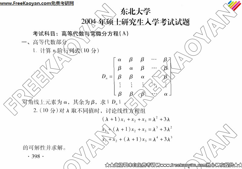 相关话题/半岛在线注册真题 高等代数 东北大学 方程