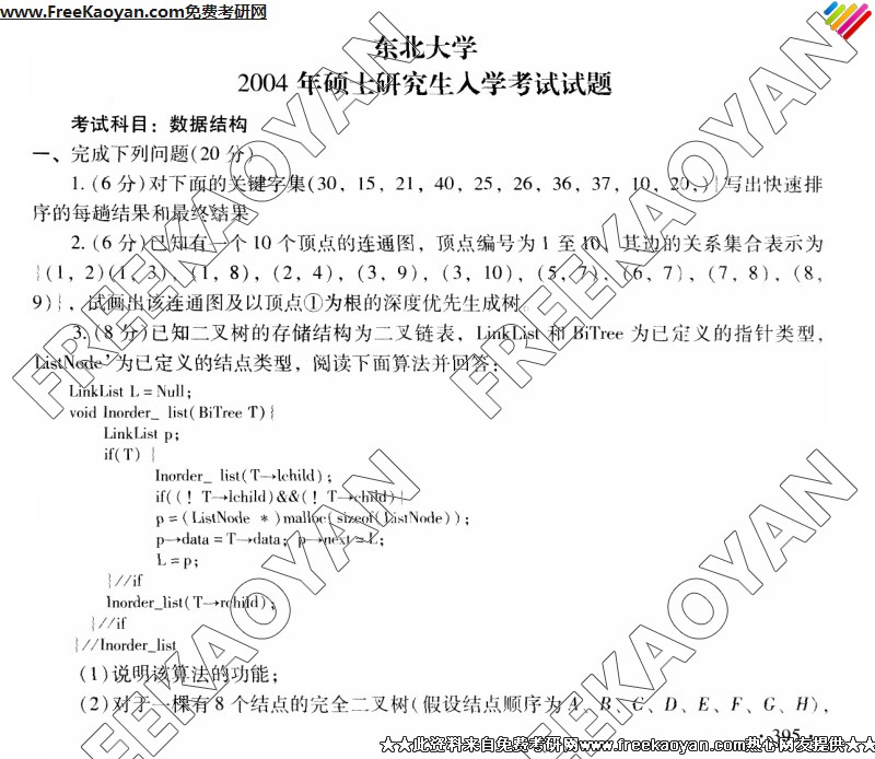 专业课半岛在线注册经验 本站小编 FreeKaoyan 2018-01-23东北大学2004年半岛在线注册真题-C语言程序设计与数据结构