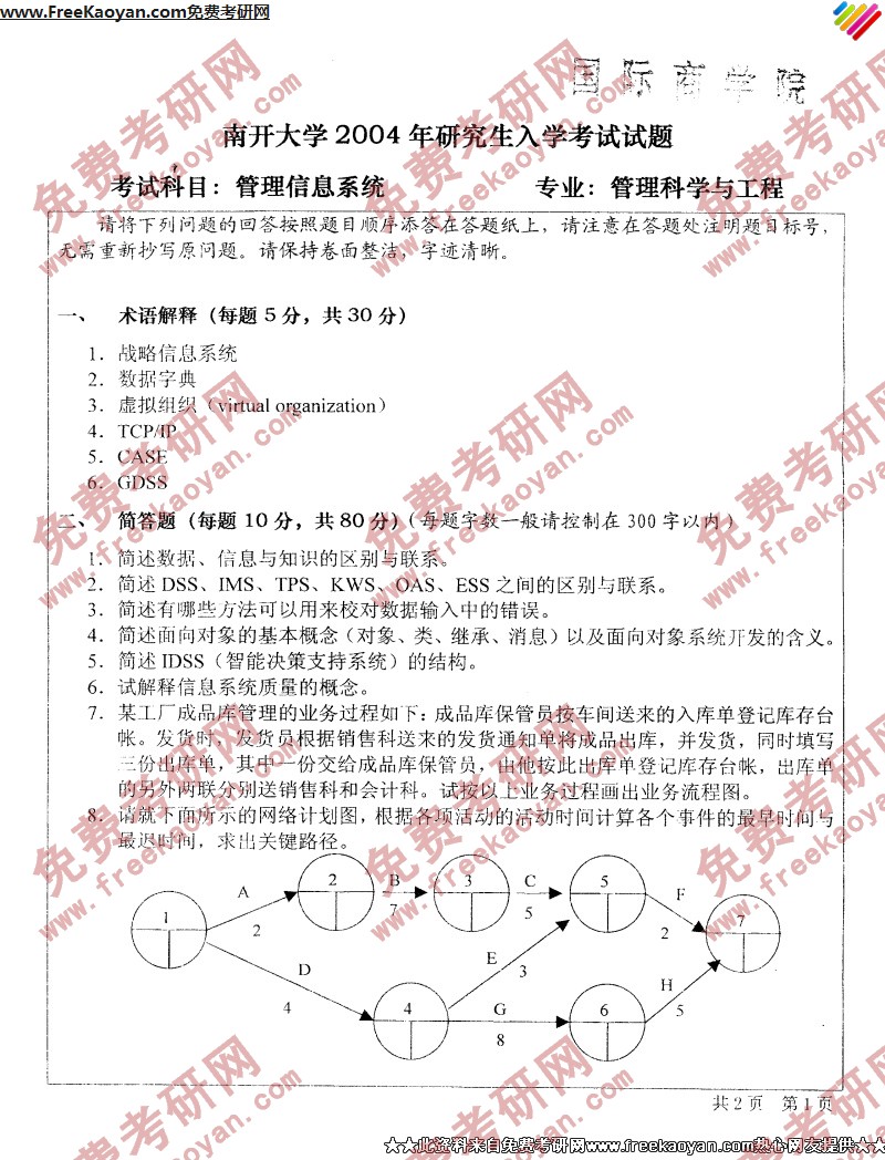 南开大学2004年半岛在线注册真题-管理学信息系统