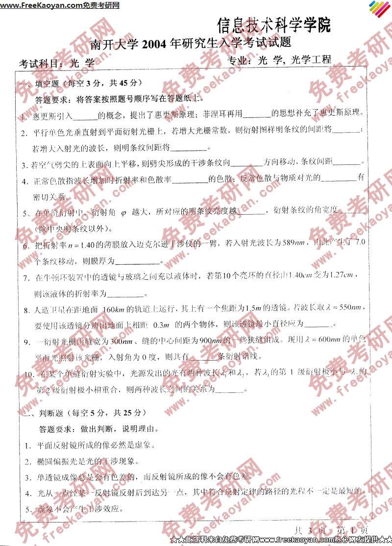 相关话题/南开大学 半岛在线注册真题 光学