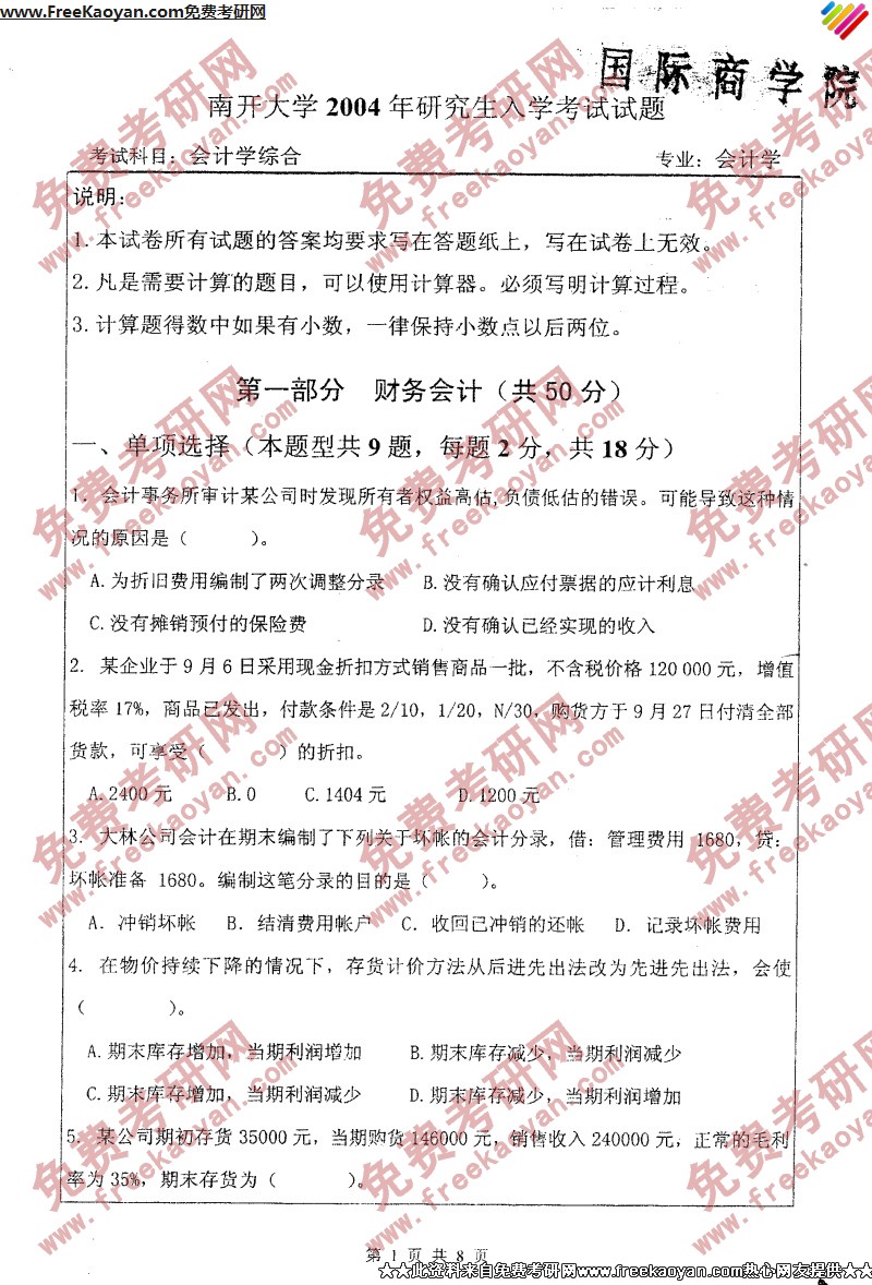 相关话题/半岛在线注册真题 南开大学 综合 会计学