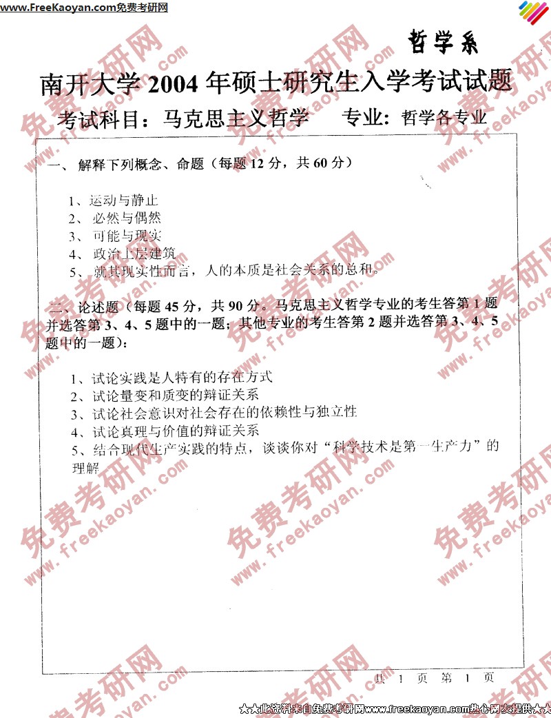 南开大学2004年半岛在线注册真题-马克思主义哲学