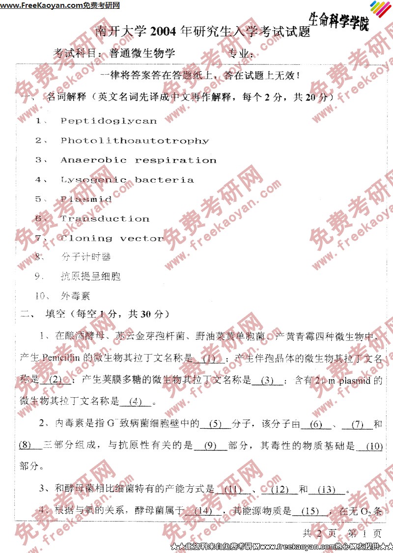 专业课半岛在线注册经验 本站小编 FreeKaoyan 2018-01-23南开大学2004年半岛在线注册真题-普通生物化学