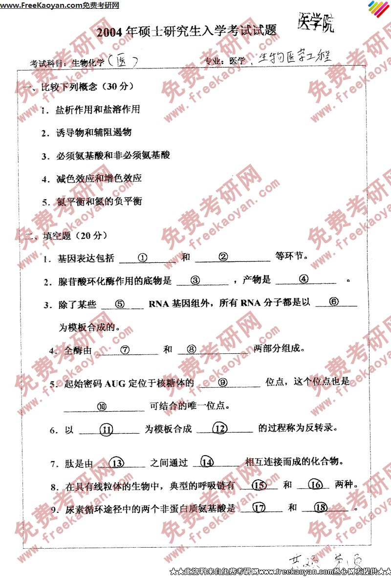 专业课半岛在线注册经验 本站小编 FreeKaoyan 2018-01-23南开大学2004年半岛在线注册真题-普通生物化学