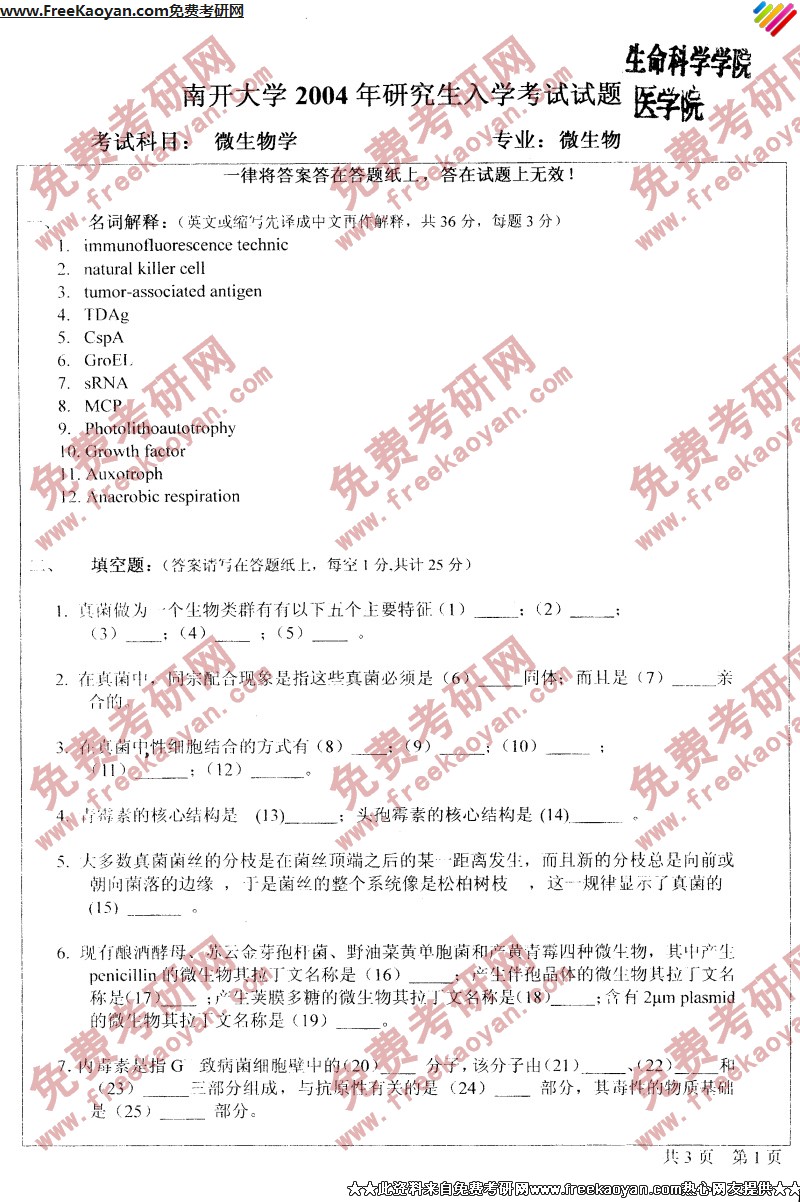 相关话题/南开大学 半岛在线注册真题 微生物学