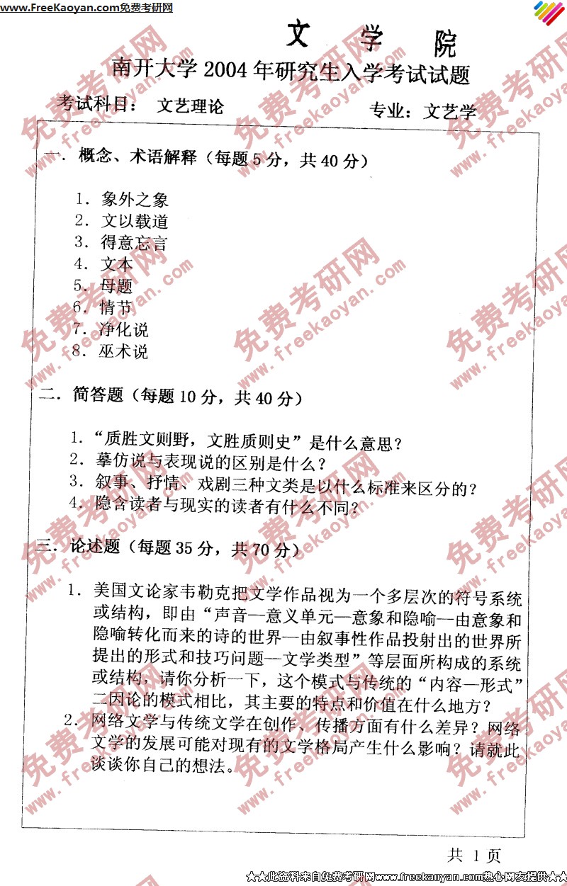 相关话题/半岛在线注册真题 南开大学 文艺 文艺理论