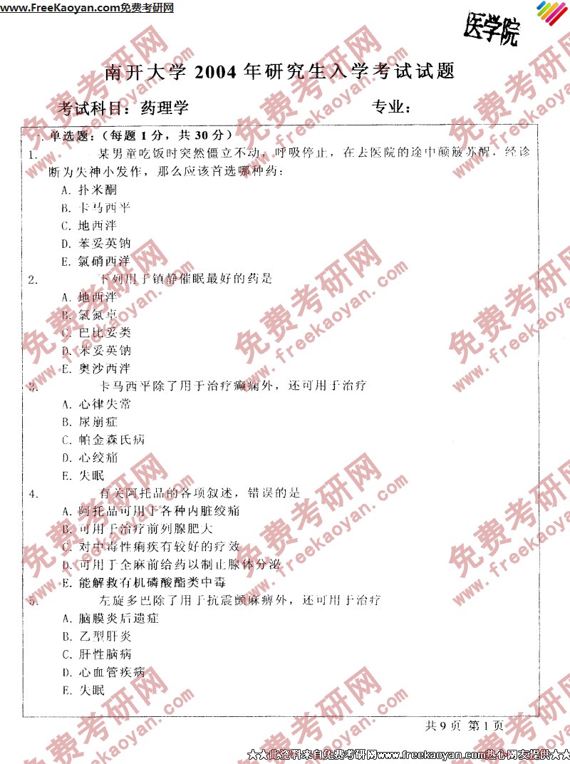 专业课半岛在线注册经验 本站小编 FreeKaoyan 2018-01-23南开大学2004年半岛在线注册真题-物理化学(物理化学专业)