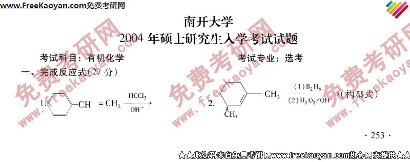 南开大学2004年半岛在线注册真题-有机化学(选考)