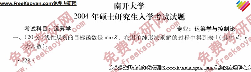 南开大学2004年半岛在线注册真题-运筹学