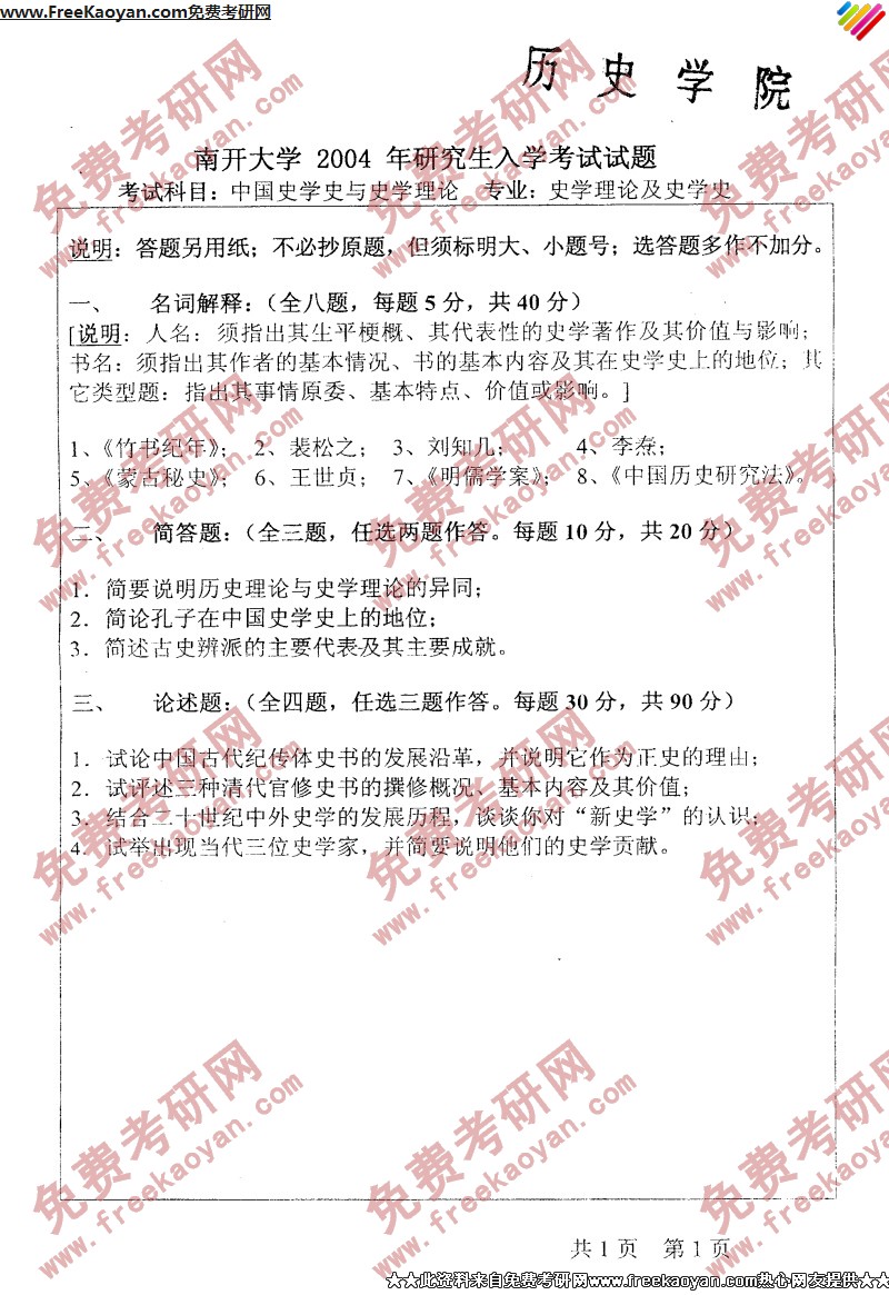 南开大学2004年半岛在线注册真题-中国史学是与史学理论