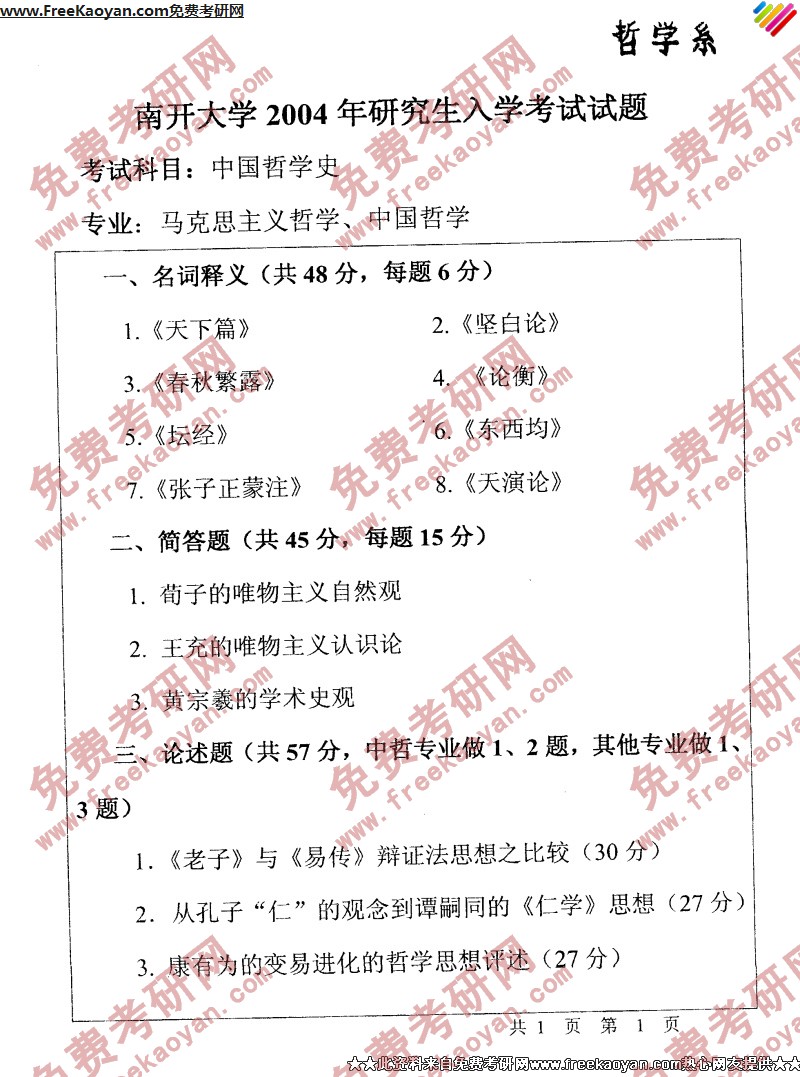 专业课半岛在线注册经验 本站小编 FreeKaoyan 2018-01-23南开大学2004年半岛在线注册真题-中国思想史