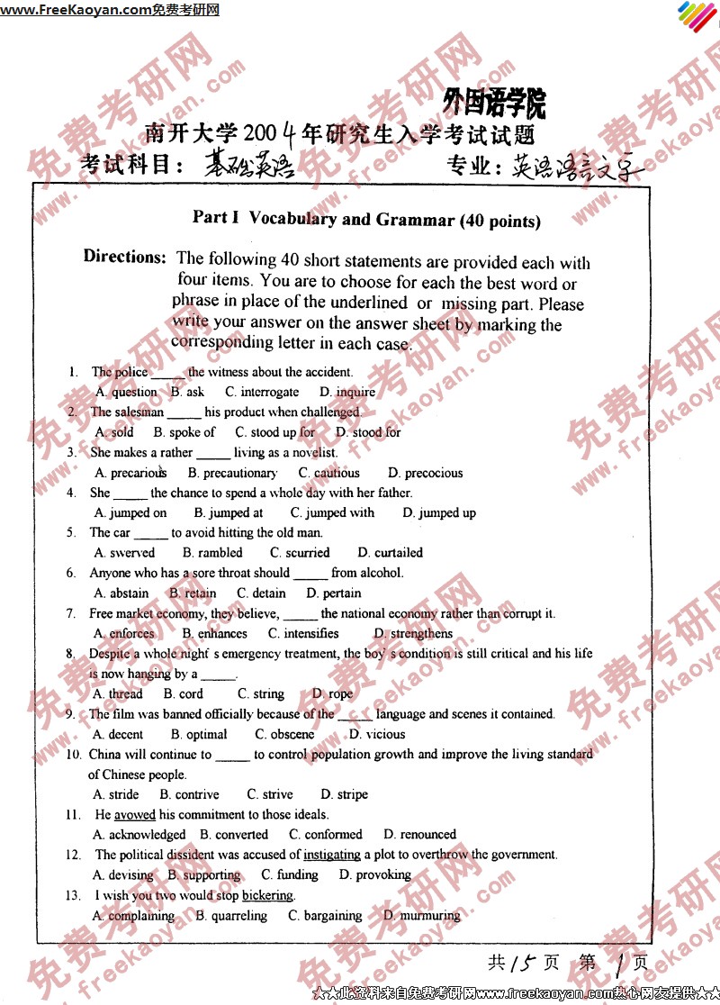相关话题/南开大学 半岛在线注册真题 基础英语