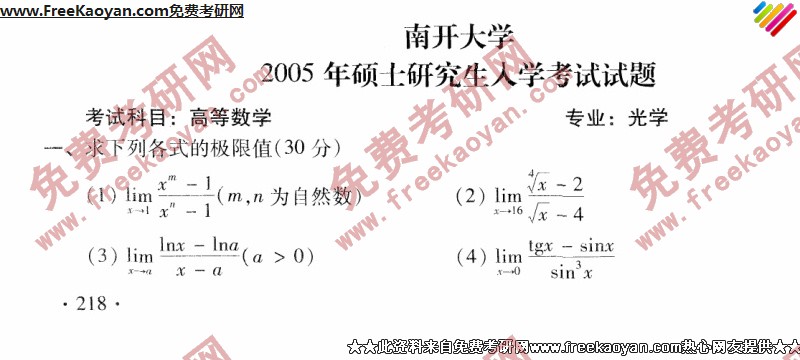 相关话题/半岛在线注册真题 南开大学 光学 高等数学